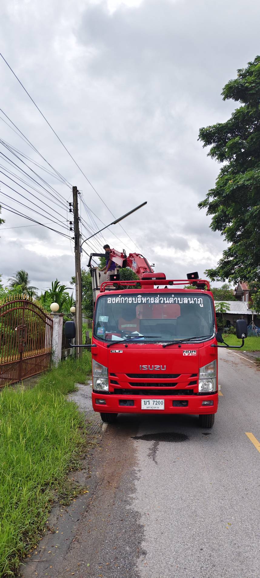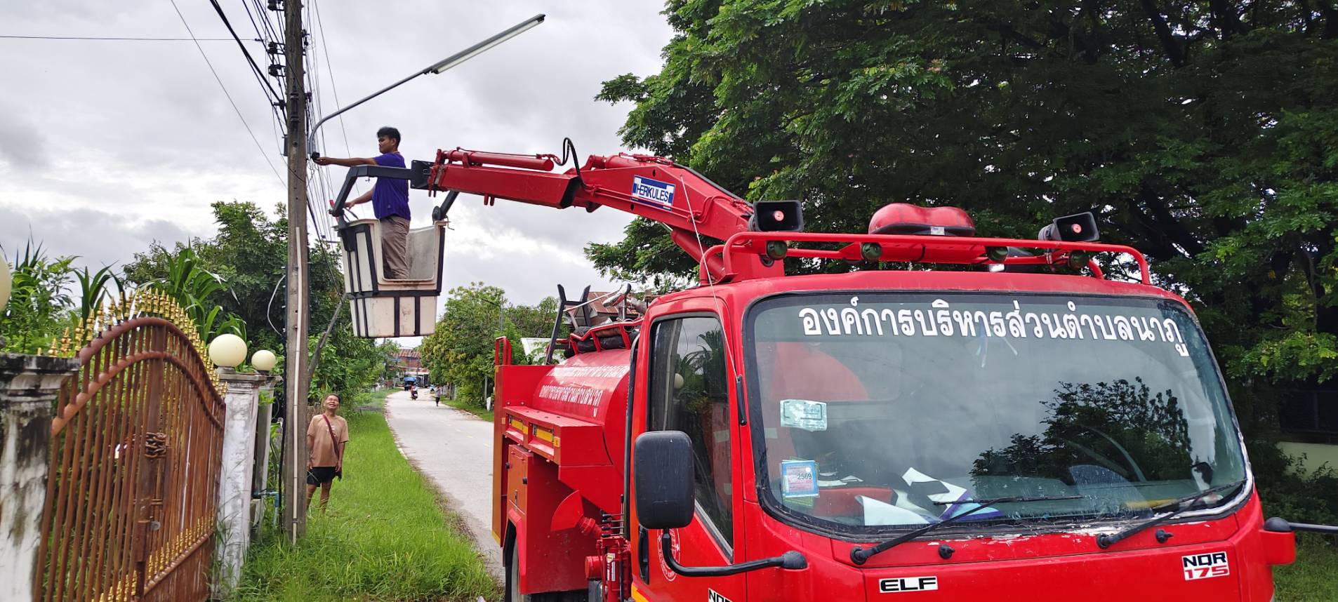 วันพุธที่ 30 กันยายน 2568 เวลา 10.00 น. นายพีรพล คงแสง นายกองค์การบริหารส่วนตำบลนาภู มอบหมายให้ เจ้าพนักงานป้องกันและบรรเทาสาธารณภัย และเจ้าหน้าที่ช่างไฟ นำรถเอนกประสงค์ ออกทำการซ่อมแซมไฟฟ้าส่องสว่างที่ชำรุด เพื่ออำนวยความสะดวกให้กับพี่น้องประชาชน บ้านหนองบัว หมู่ที่ 5 จำนวน 1 จุด และบ้านโนนสวน หมู่ที่ 16 จำนวน 2 จุด