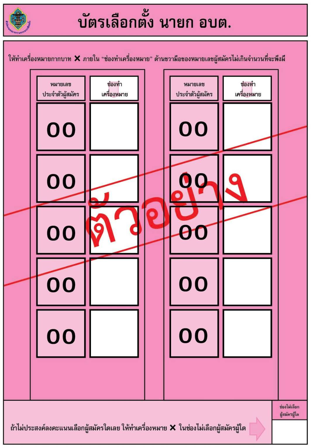 #ตัวอย่างบัตรเลือกตั้ง สมาชิกสภา อบต และ นายก อบต.