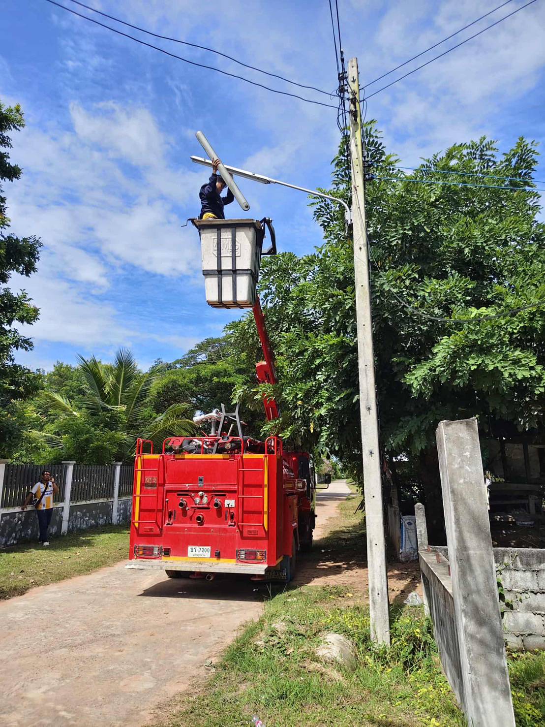 วันจันทร์ ที่ 22กันยายน 2568 เวลา 10.00 น. นายพีรพล คงแสง นายกองค์การบริหารส่วนตำบลนาภู มอบหมายให้ พนักงานป้องกันและบรรเทาสาธารณภัย และเจ้าหน้าที่ช่างไฟ นำรถเอนกประสงค์ ออกทำการซ่อมแซมไฟฟ้าส่องสว่างที่ชำรุด ให้กับประชาชนที่เข้ามาทำเรื่องร้องขอไว้ เพื่ออำนวยความสะดวกให้กับพี่น้องประชาชน บ้านป่าโพธิ์ หมู่ที่10 จำนวน 2 จุด