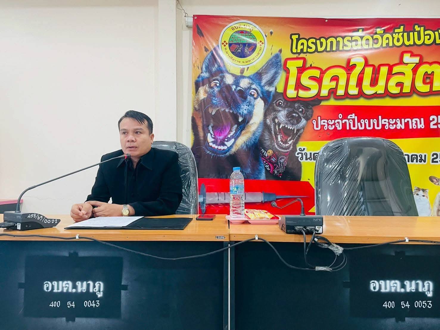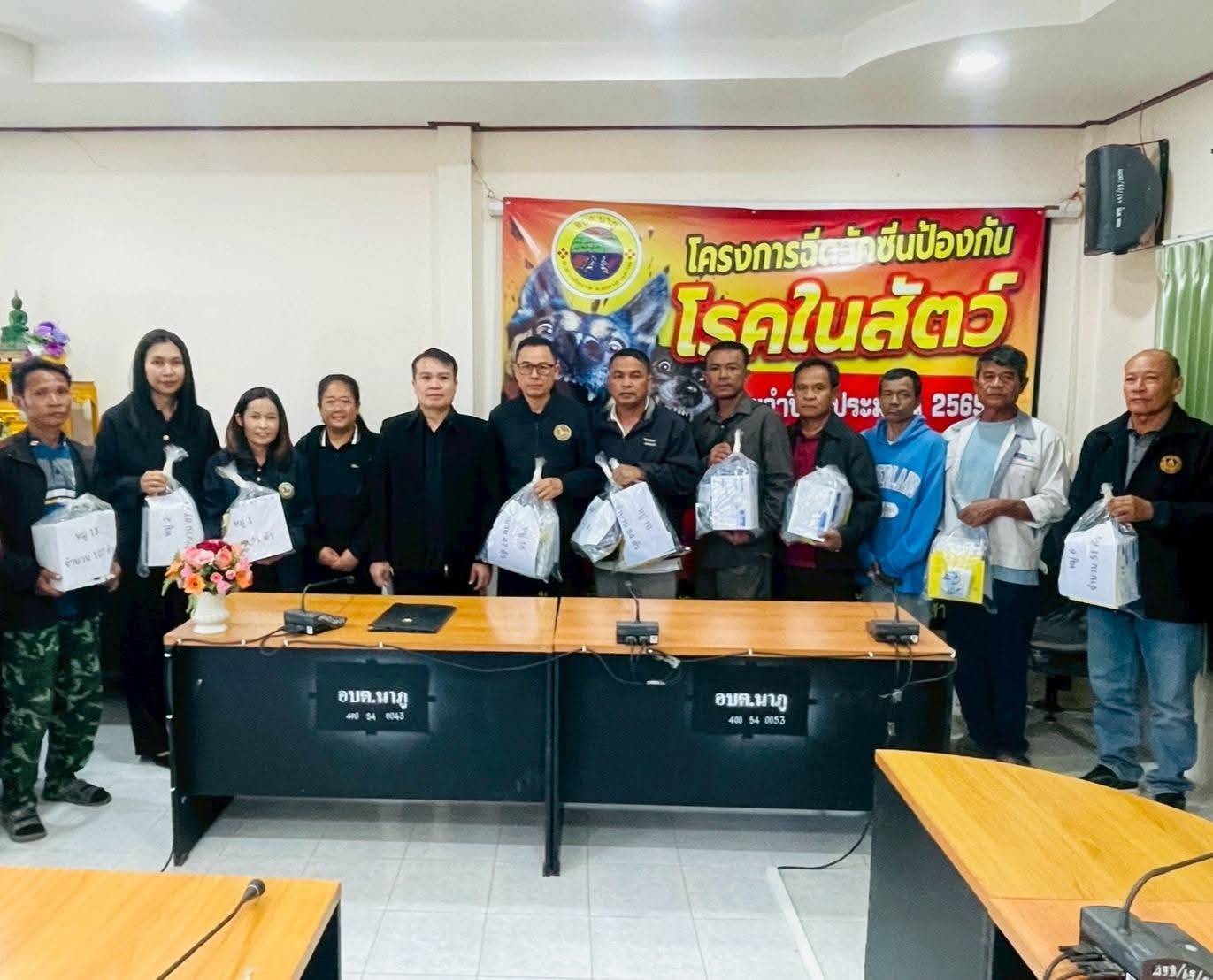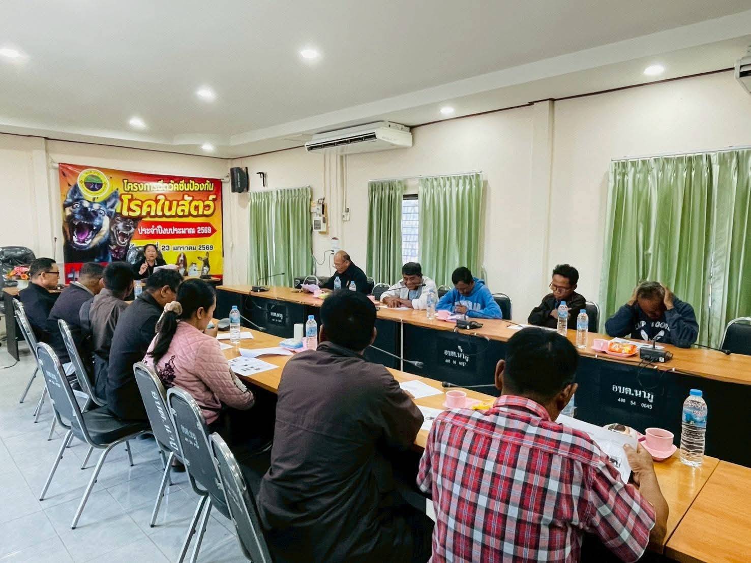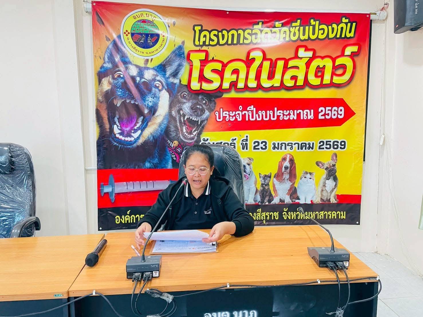 นำโดย นายกิตติชัย แคนสี ปลัดองค์การบริหารส่วนตำบลนาภู ปฏิบัติหน้าที่นายกองค์การบริหารส่วนตำบลนาภู พร้อมด้วย รองปลัด องค์การบริหารส่วนตำบลนาภู หัวหน้าส่วนราชการ องค์การบริหารส่วนตำบลนาภู พร้อมทั้งอาสาสมัครปศุสัตว์หมู่บ้าน ทั้ง 17 หมู่บ้าน ร่วมเปิดพิธีโครงการฉีดวัคซีนป้องกันโรคในสัตว์ และได้รับเกียรติจาก ท่านวิทยากร นางสาวชณัชชา บัวชุม นายสัตว์แพทย์ปฏิบัติการ สำนักงานปศุสัตว์อำเภอยางสีสุราช ในวันศุกร์ ที่ 23 มกราคม 2569 เวลา 09.00 น. ณ ห้องประชุมองค์การบริหารส่วนตำบลนาภู